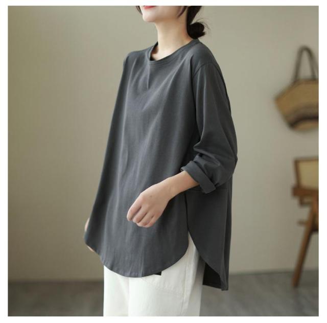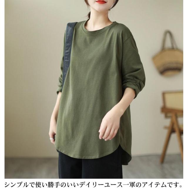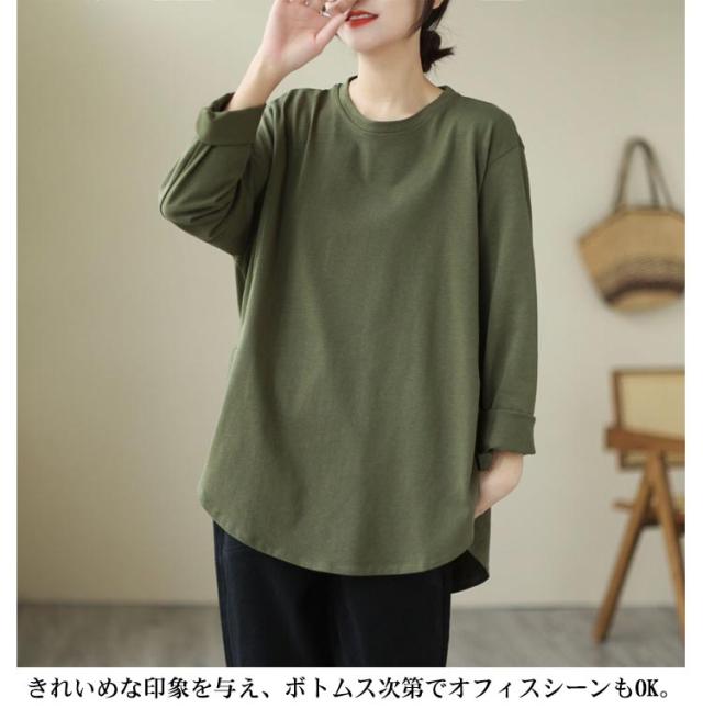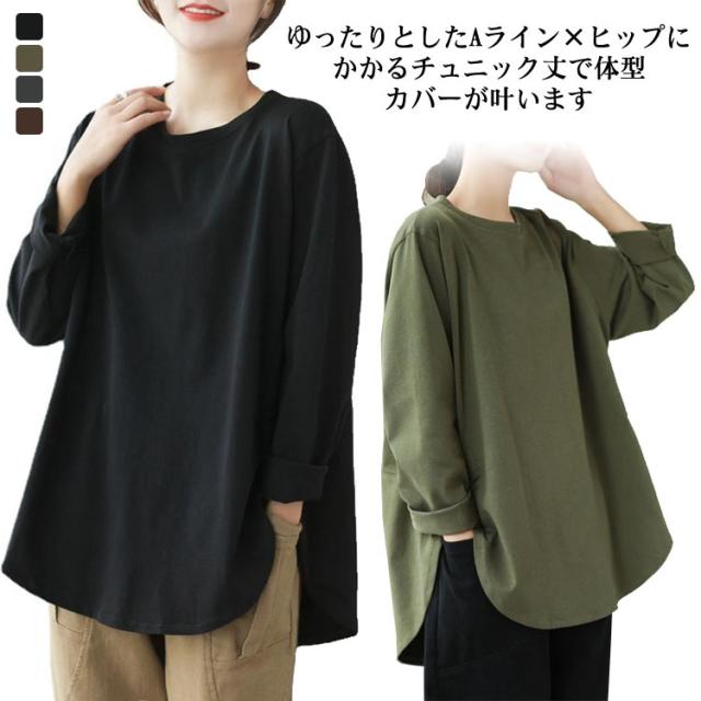 Aラインプルオーバーチュニック トップス レディース トレーナー 秋 長袖 カットソー Aライン 体型カバー プルオーバー チュニック 綿 コットン ゆったり オーバーサイズ 無地 秋冬 大きいサイズ 黒 部屋着