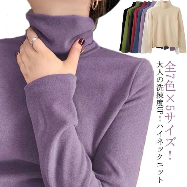 | 全7色×5サイズ!大人の洗練度UP!ハイネックニット 手触りの柔らかな生地を使い、決してチクチクせず着心地的にも申し分無し タートルネックの仕様が首元まで暖めて、気質アップ効果もバッチリ 秋冬ファッションに必ず大活躍、通勤にも日常にも似合うマストアイテム | |