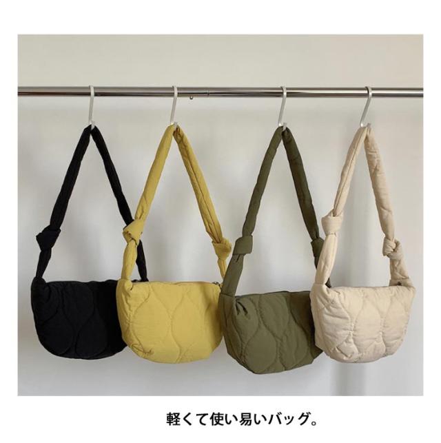 | トレンドのキルティング素材で作られいたミニバッグが登場. ふっくらしたキルティングとミニサイズの掛け合わがポイント◎ くたっと柔らかな生地にパイピングデザインが今っぽい、 肩掛けとしても斜めがけとしても使える 軽くて使い易いバッグ。 必要なものがちょうど入る適度なサイズ感◎ | |
