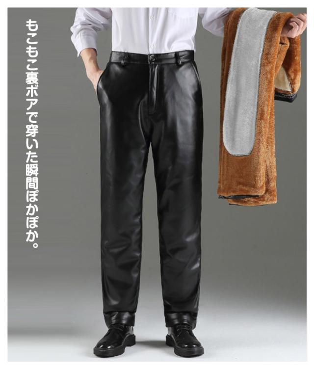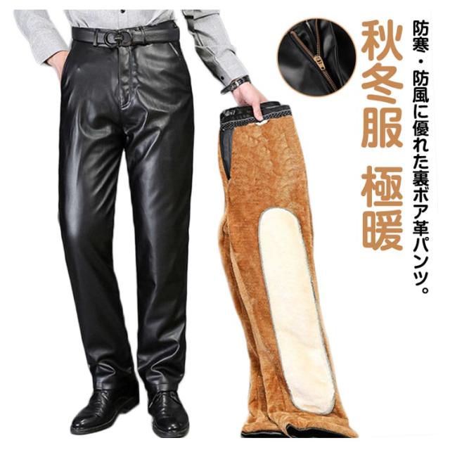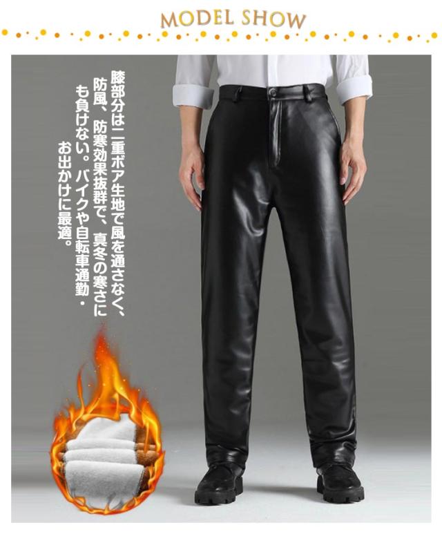 レザーパンツ バイクパンツ メンズ 裏ボア 裏起毛 合成皮革 紳士 PUレザー 防寒パンツ スキニーパンツ ストレート 秋冬服 極暖 ライダースパンツ 裏ボアパンツ ズボン 革パンツ 防風 大きいサイズ ハイウェスト 通勤