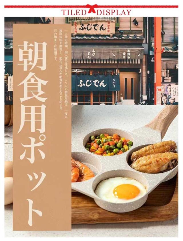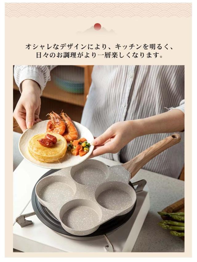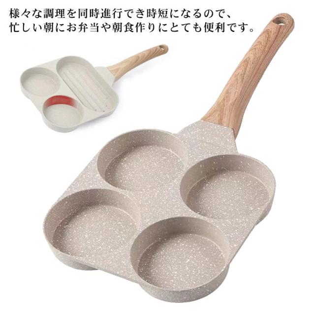 仕切り付き 4穴フライパン 目玉焼きフライパン 卵焼きフライパン 4つ穴円形フライパン 朝食フライパン マルチパン 四角型 お弁当 作り 大判焼き器 今川焼き 焼きおにぎり パンケーキ お手入れ簡単 アルミ合金製 キャラ弁 型 丸い 朝食