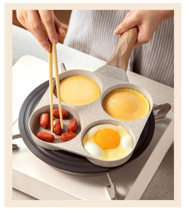 | 様々な調理を同時進行でき時短になるので、忙しい朝にお弁当や朝食作りにとても便利です。 円形仕切りにより、目玉焼き、ソーセージ、パンケーキ、今川焼きなどを綺麗に仕上げます。 鍋の内面は焦げ付き防止コーティングで処理されているため、全体を水洗いでき長期間清潔に使い続けられます。_x000b_調理後もスポンジで軽く拭くだけで、汚れもスルッと落ちます。 オシャレなデザインにより、キッチンを明るく、日々のお調理がより一層楽しくなります。 IH、 ガスコンロ、 ラジエンヒーター 、エンクローヒーター 、シーズヒーター等オール熱源対応。 | |