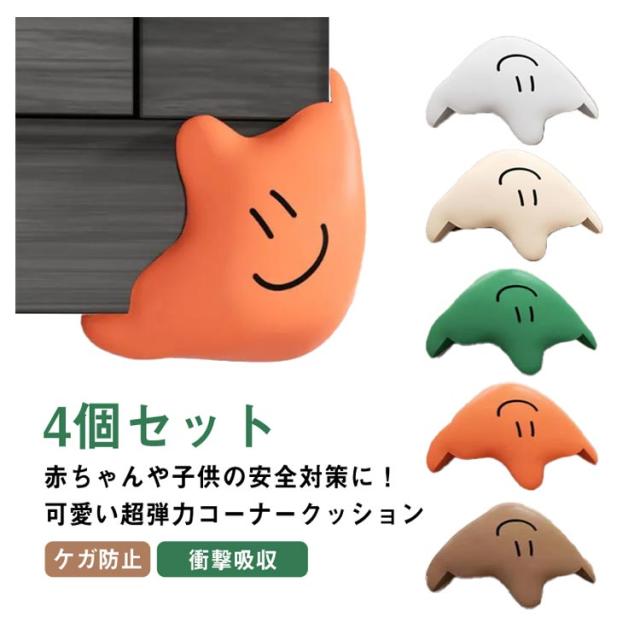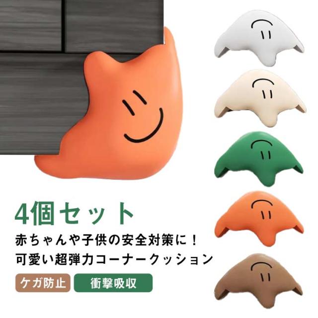 | 赤ちゃんや子供の安全対策に!可愛い超弾力コーナークッション 4個セット 両面テープ仕様でテレビ台やテーブルなどの角に簡単に取付可能。 衝撃を吸収し、不意にぶつかった時の安全対策におすすめ。 かわいいデザインで子供達も喜んでます! | |