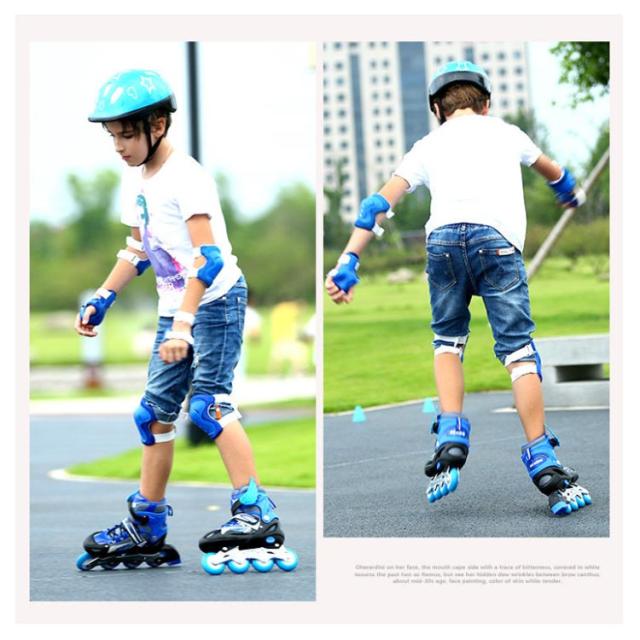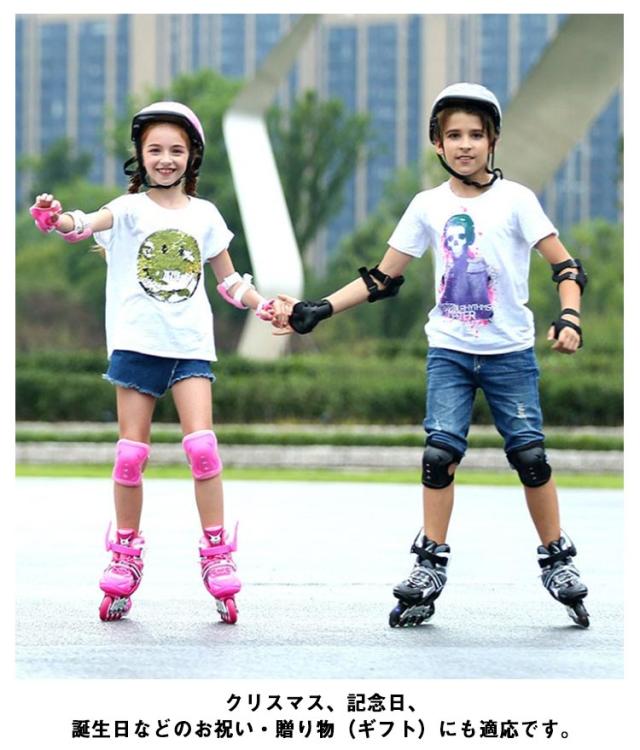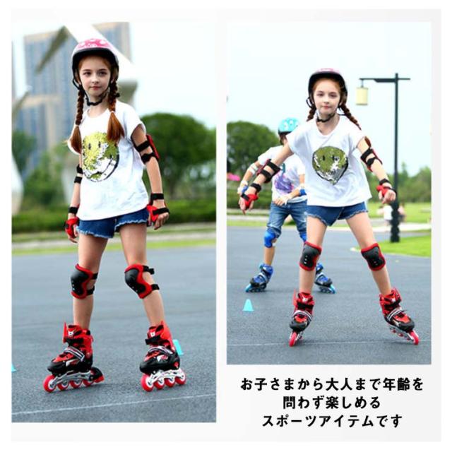 インラインスケート キッズ 子供用 ローラーシューズ 6点セット プロテクター メッシュ ローラーブレード ローラースケート スポーツ 玩具 ジュニア 子供 おもちゃ ホイール 光る 初心者 静音 通気 安全 男女兼用 バランス 誕生日 男の子 女の子 プレゼント ギフト 送料無料