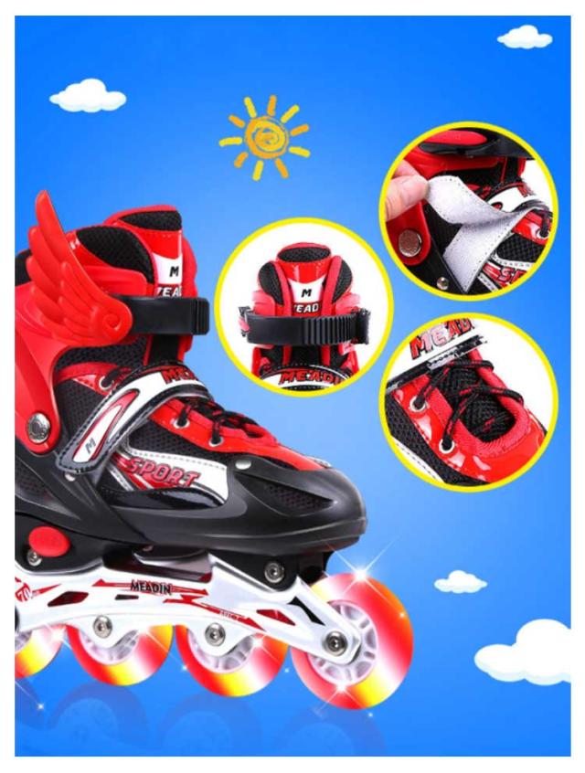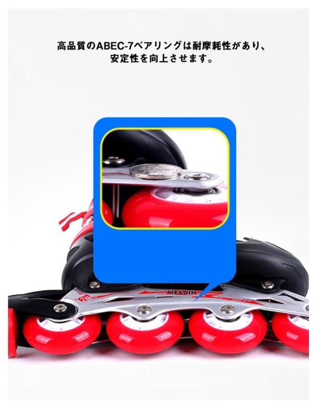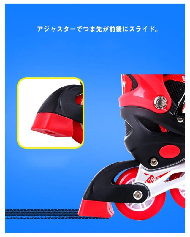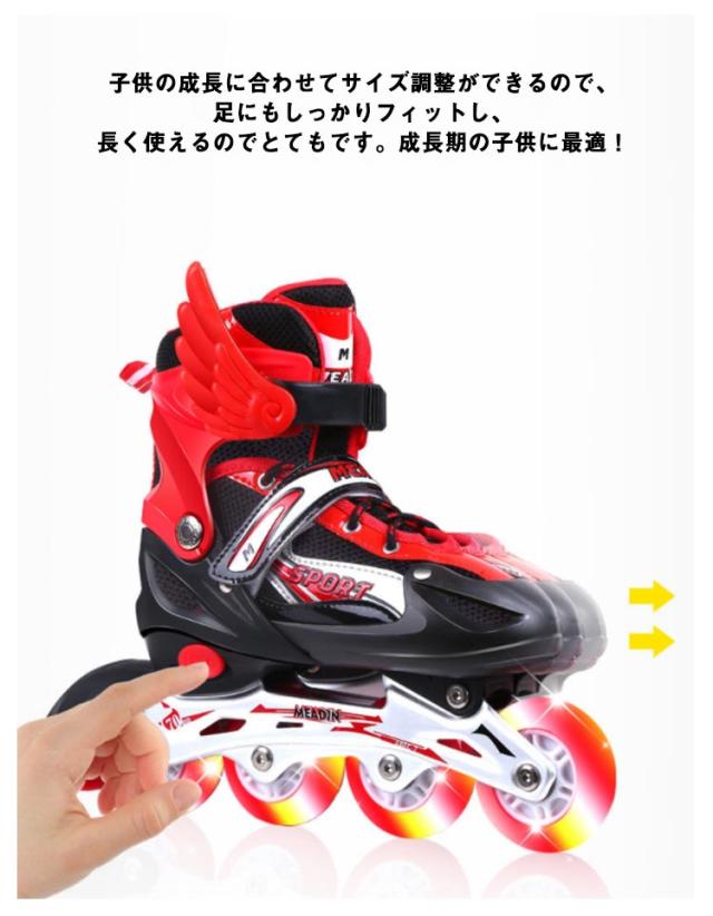 | 履き心地もよく、通気性抜群なインラインスケート プロテクター(両肘・両ひざ・両手首)、シューズ、羽根×2、六角レンチ×2のセット アジャスターでつま先が前後にスライド。 高品質のABEC-7ベアリングは耐摩耗性があり、安定性を向上させます。 通気性抜群のメッシュ素材が快適な履き心地とフィット感をもたらします。 キラキラと光る★滑るときにピカピカと光ってカッコイイ! 子供の成長に合わせてサイズ調整ができるので、足にもしっかりフィットし、長く使えるのでとてもです。成長期の子供に最適! お子さまから大人まで年齢を問わず楽しめるスポーツアイテムです クリスマス、記念日、誕生日などのお祝い・贈り物(ギフト)にも適応です。 | |