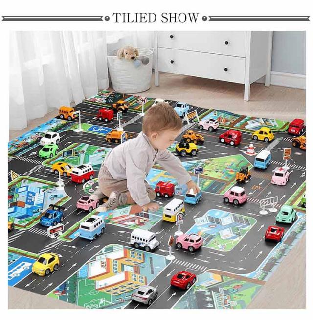 130×100cm プレイシート プレイマット レジャーシート 住宅 公園 街 道路マット 道路マップ ドライブマップ 知育おもちゃ お家遊び 防水加工 英語 ベビー 子供 誕生日 プレゼント