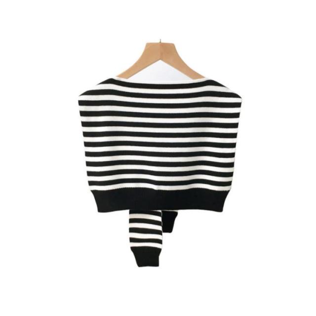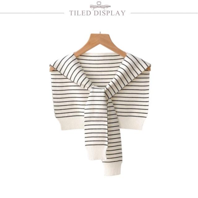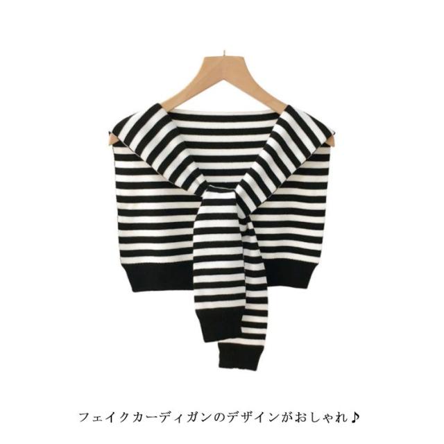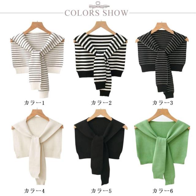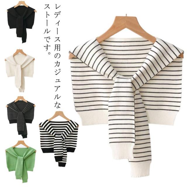 送料無料 ボーダー カーディガン風 肩掛け ニット ストール レディース ケープ ショール風 マント ショルダーカーディガン ショール 肩かけ ニットストール 薄手 付け襟 ニット付け襟 冷房 肩巻き おしゃれ 冷房対策 エレガント ファッション 春夏秋