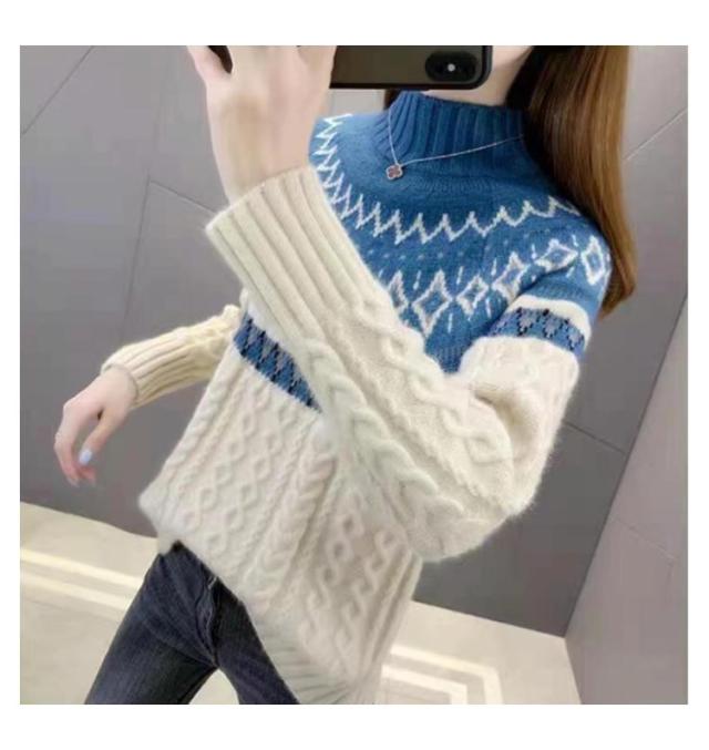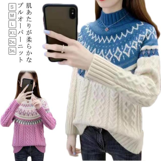 ノルディック柄プルオーバーニット レディース 長袖 トップス ゆったり 春 秋 冬 ノルディック柄 おしゃれ 切り替え クルーネックセーター レディース 北欧 ナチュラル カジュアル クルーネック 秋冬