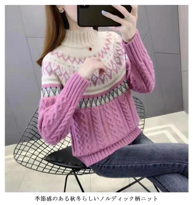 | 肌あたりが柔らかなプルオーパーニット 季節感のある秋冬らしいノルディック柄ニット | |
