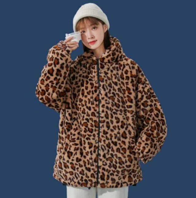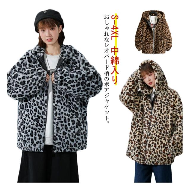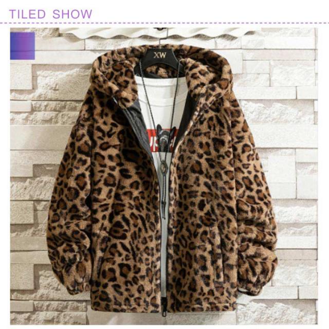 ムートンジャケット ジップアップブルゾン メンズジャケット ボアジャケット レオパード柄 ヒョウ柄 もこもこ ブルゾン 厚手 防寒 中綿入り 中綿 パーカー ボアコート 韓国 原宿