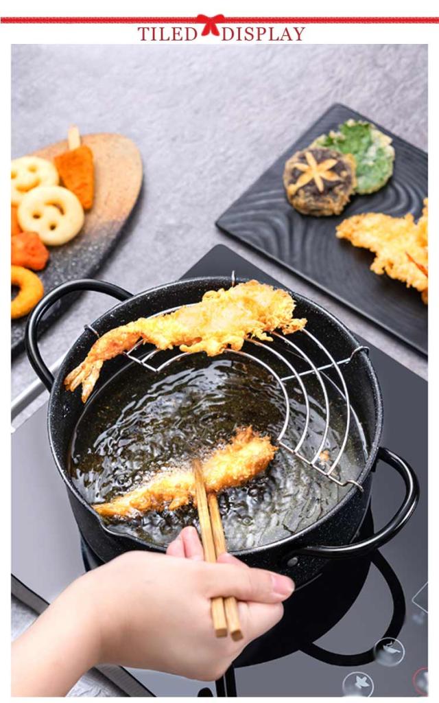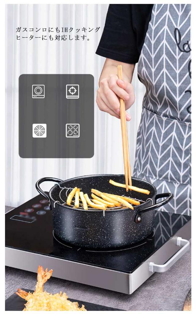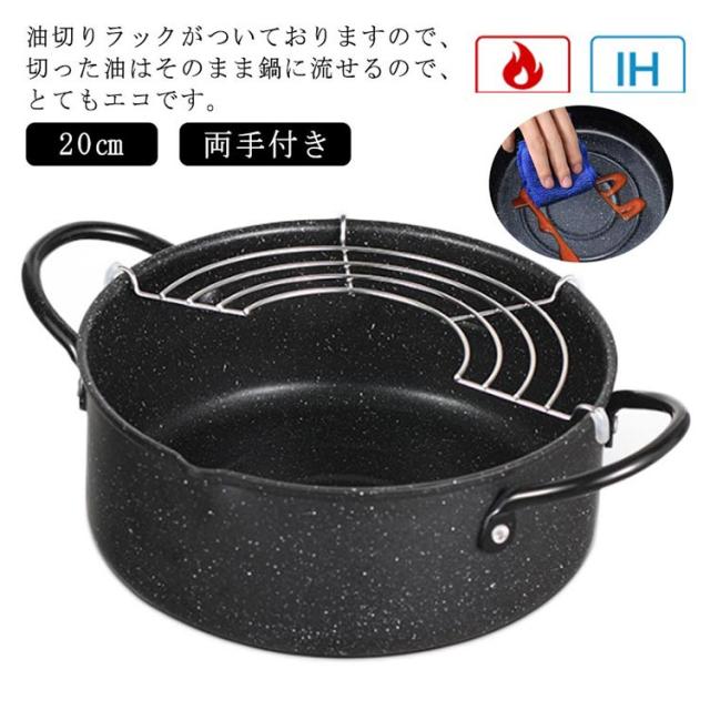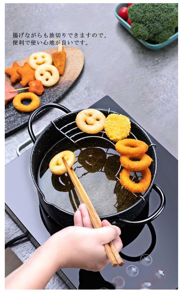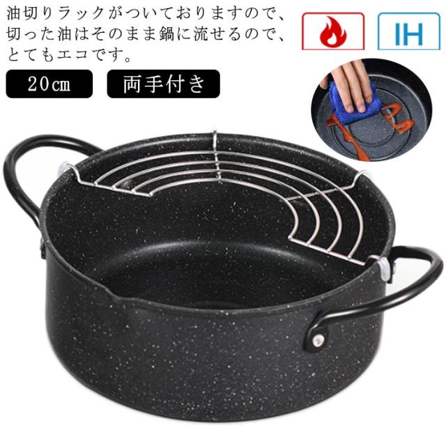 天ぷら鍋 20cm ih対応 てんぷらなべ 網付き 2way 天麩羅 天麩羅鍋 揚げ物鍋 両手天ぷら鍋 鉄鍋 油切りラック 揚げ網付き 鉄製 フライ鍋 調理器具 両手鍋 ガス火対応 アミ付き 天ぷら用鍋 フライヤー なべ お鍋 段付き