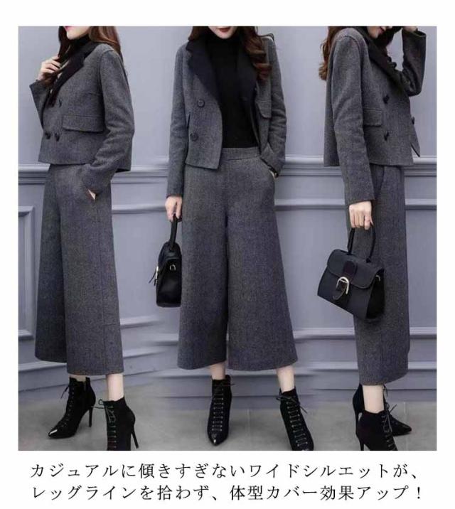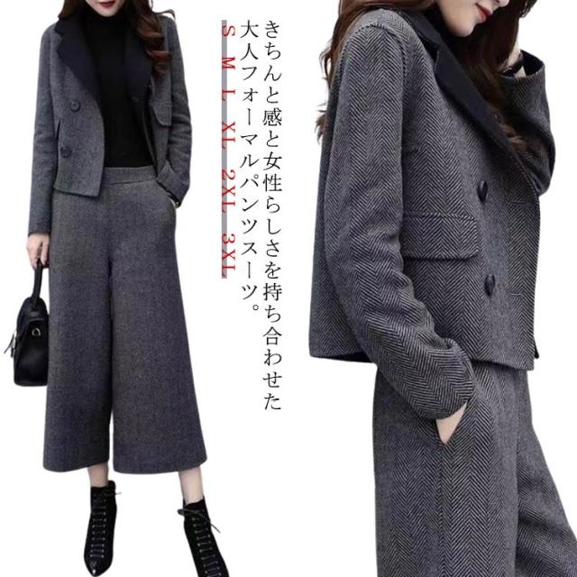 パンツスーツ レディース 40代 50代 セレモニー セットアップ 春 秋冬 スーツ フォーマルスーツ テーラード ジャケット ワイドパンツ きれいめ 結婚式 卒業式 入園式 入学式 卒園式 ママスーツ 母 コート メルトン 【送料無料】