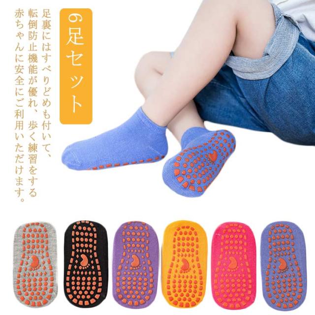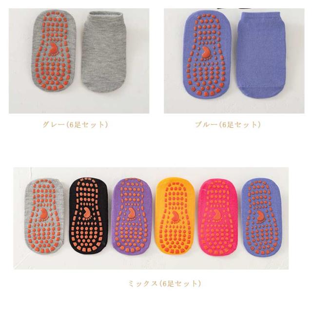 ベビー 靴下 滑り止め付き 6足セット 子供 ソックス キッズ こども用 赤ちゃん ショートソックス くるぶし 保育園 男の子 女の子 無地 春 夏 秋 通園 通学 ジュニア 高齢者 大人 レディース ヨガ 幼稚園 送料無料
