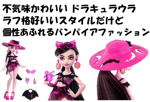 Monster High 即納 モンスターハイ 日本未発売 Dracuraura Fashion Doll with Swimsuits Mattel マテル製 ドラキュラウラ ファッション コレクター ドラキュラ 水着 孤島の休暇 Scare Island おもちゃ 人形 可動関節 女の子 モンスター ハイ アクセサリー USA正規品 HRP66