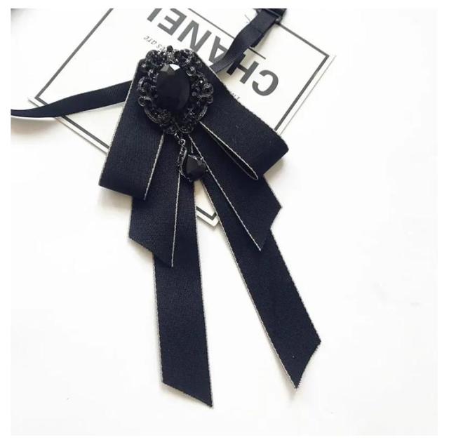 送料無料 リボンブローチ リボンタイ リボン ネクタイ 英国風 イギリス ゴージャス ラインストーン 制服 ユニフォーム ブローチ お姫様 王子様 ファッション小物