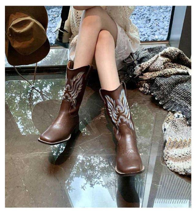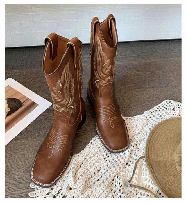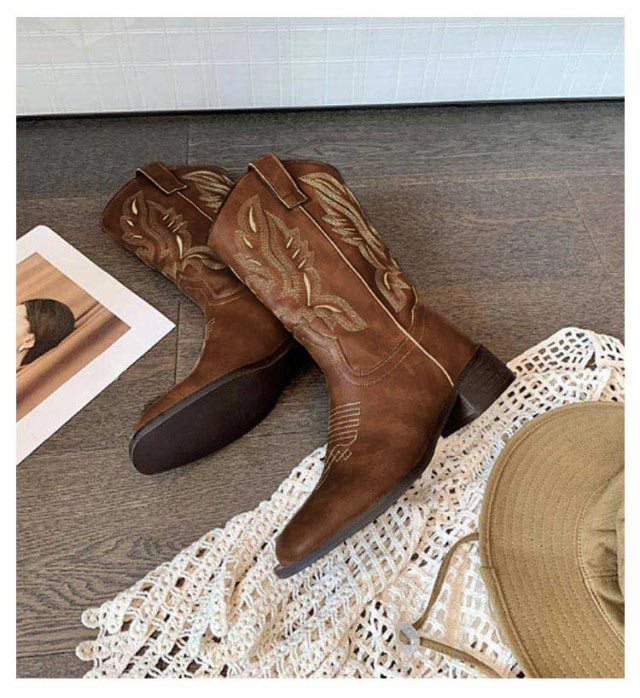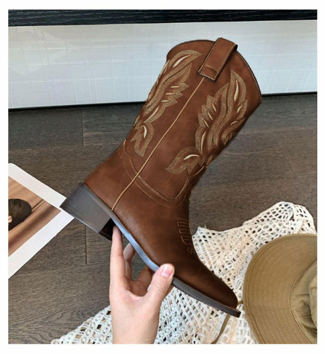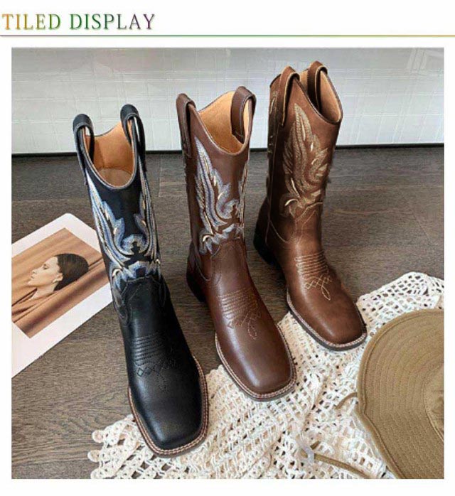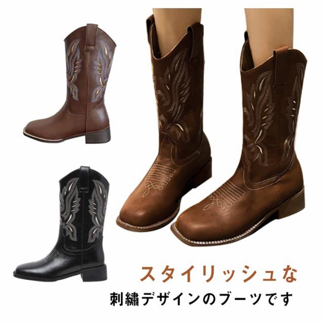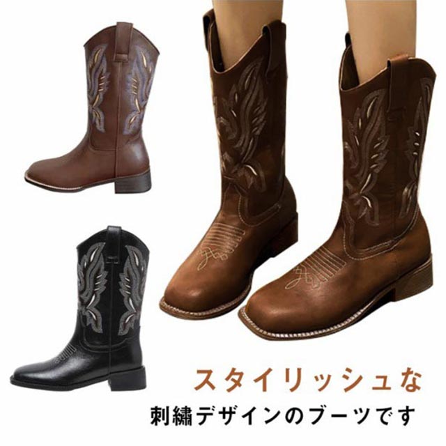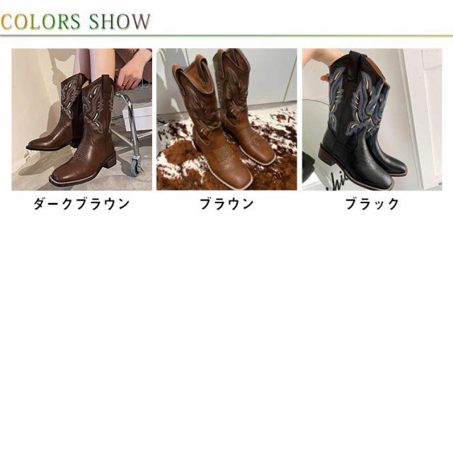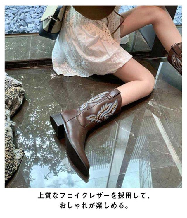 ブーツ レディース ウエスタンブーツ スクエアトゥ ショートブーツ ウエスタン ブーツ ローヒール 疲れない ビンテージ ミドル丈 滑らない 歩きやすい 美脚見せ 婦人靴 刺? 22.5-25.0cm
