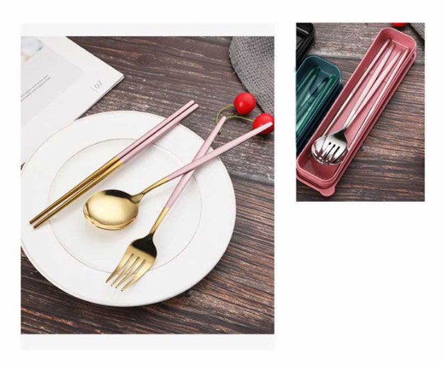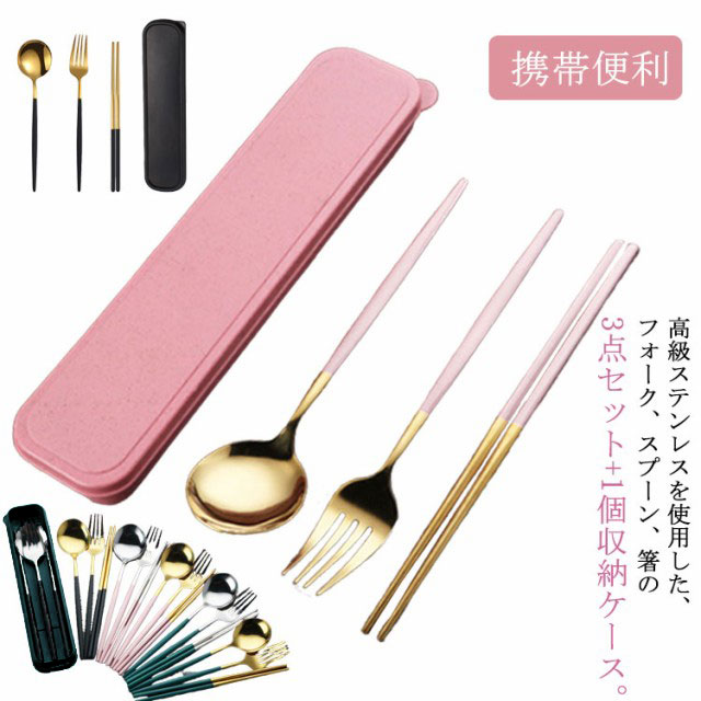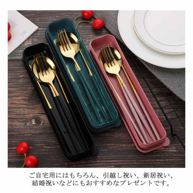 カトラリー カトラリーセット お弁当 3点セット 箸 スプーン フォーク トリオセット ゴールド シルバー 北欧 雰囲気 食器 収納ケース付 キャンプ 持ち運び おしゃれ アウトドア 大人 通勤 通学 学生用食器 ランチ 旅行 送料無料