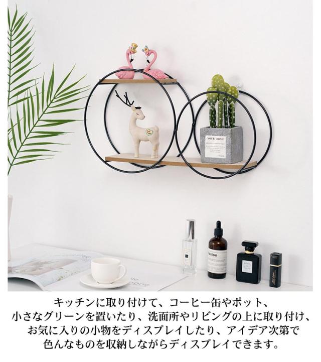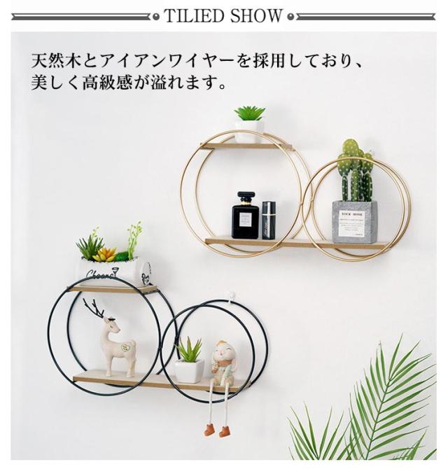 ウォールシェルフ ウォールラック 円形 丸 アイアン 木製 壁掛け 棚 深型 飾り棚 壁飾り ウォールディスプレイ ウォールデコ 壁面収納 ラック 賃貸 洗面所 リビング インテリア モダン ゴールド ブラック 無痕釘