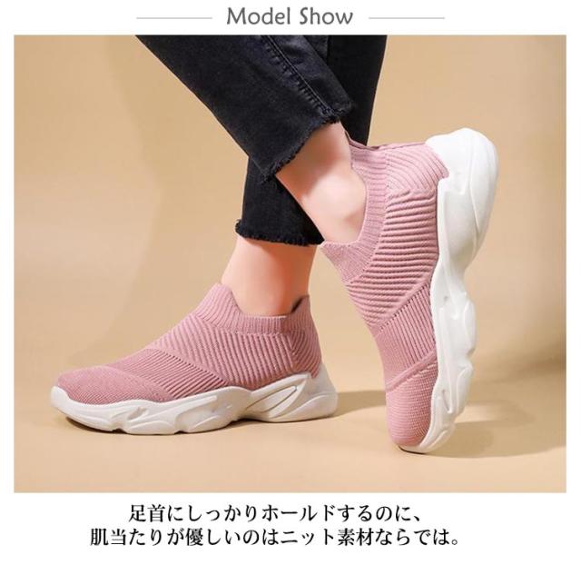 | 超軽量設計で足が疲れにくいスニーカー 足首にしっかりホールドするのに、肌当たりが優しいのはニット素材ならでは。 伸縮するから、サッと履くだけで自分サイズにフィットします 通気性のいいアッパーでムレにくい クッション性も良く足に負担がかからない ジムやランニング、ウォーキングにもおすすめ 普段のコーデで服に合わせてカラーを選べる | |