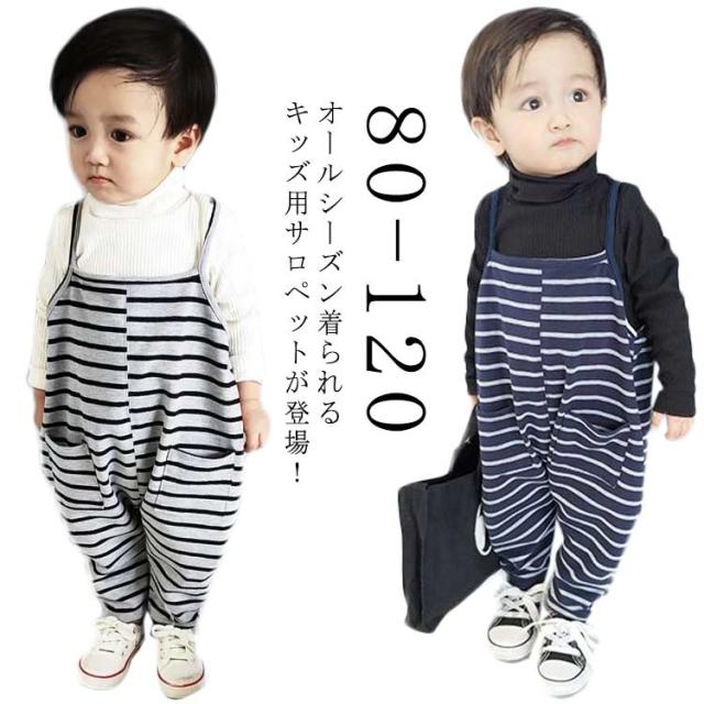 送料無料 キャミサロペット 子供服 キッズ 男の子 女の子 セットアップ オールインワン オーバーオール サロペット オールインワン つなぎ テーパード パンツ ボーダー柄 コットン混 楽ちん 無地 スウェット ルームウェア