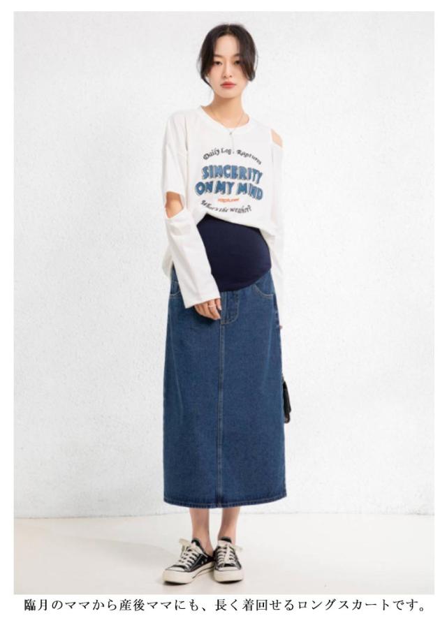 デニム ロングスカート マタニティ 妊婦 ママ マタニティウェア ボトムス スリット 産前 産後 マキシ ミモレ丈 レディース 春 夏 秋 カジュアル 春服 スカート きれいめ おしゃれ シンプル 体型カバー 送料無料