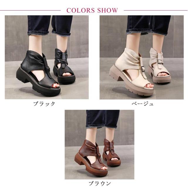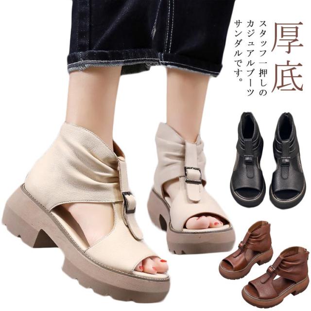 オープントゥ ブーツサンダル 厚底サンダル ショートブーツ フラットシューズ 厚底シューズ ペタンコ コンフォート 春 夏用 通気性 カジュアル 美脚 靴 パンプス オシャレ ブラック ベージュ ブラウン