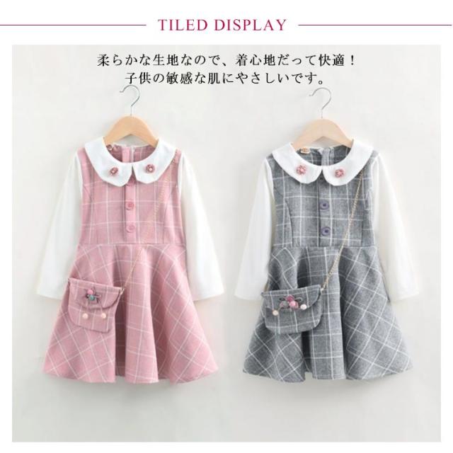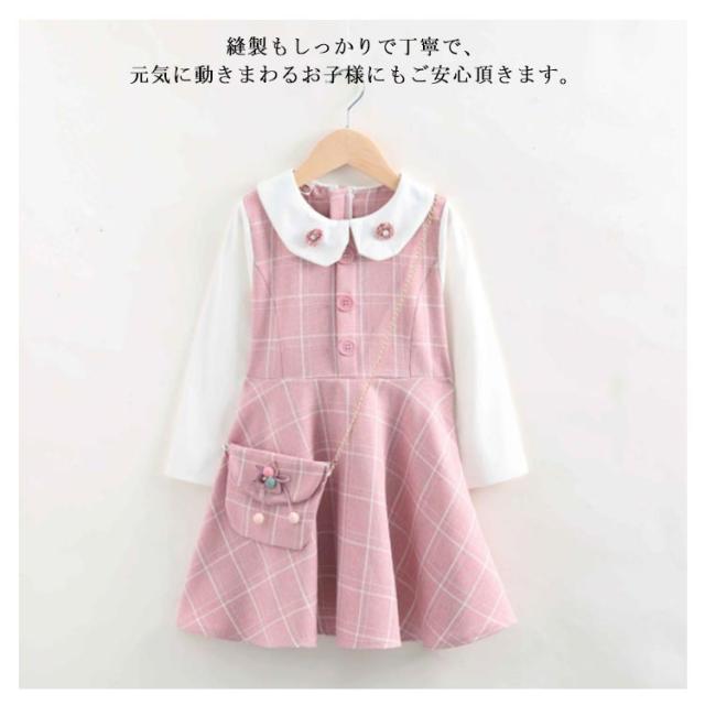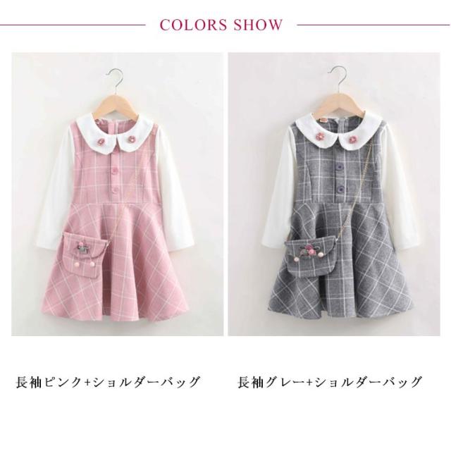 2点セット 子供 ドレス ワンピース 長袖 バッグ付き フォーマル スーツ 子供服 女の子 チェック柄 キッズ フォーマルドレス 子供 お姫様 セットアップ 上下セット 女の子用 入学式 入園式 卒業式 七五三 結婚式 発表会 通園 通学 誕生日 フォーマル 卒業式 入園式 可愛い