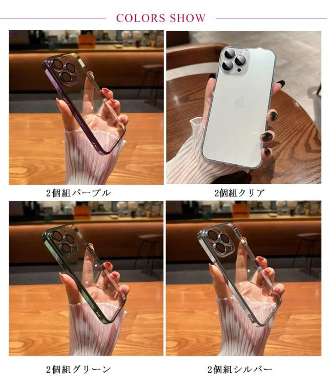 2個組 レンズまでフルカバー! 選べる9色 iPhone14 ケース iPhone13 12 ケース クリア iPhone xr xs xsmax x 7 8 plus カバー iPhone14 12 13 mini Pro Max 透明 黄変防止 メッキ 指紋防止 ハードケース 防塵 高級感 スリム 耐衝撃