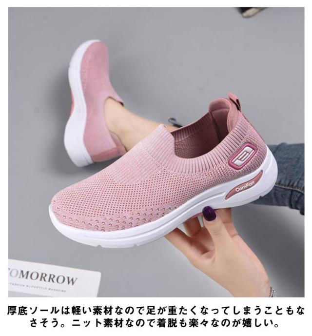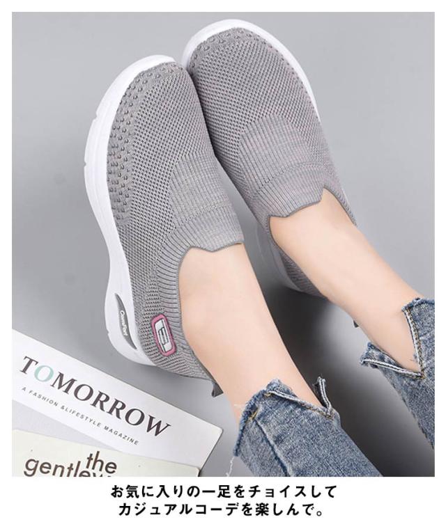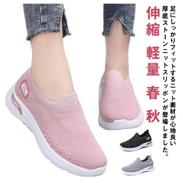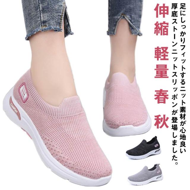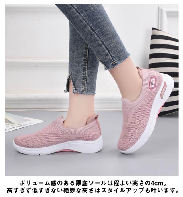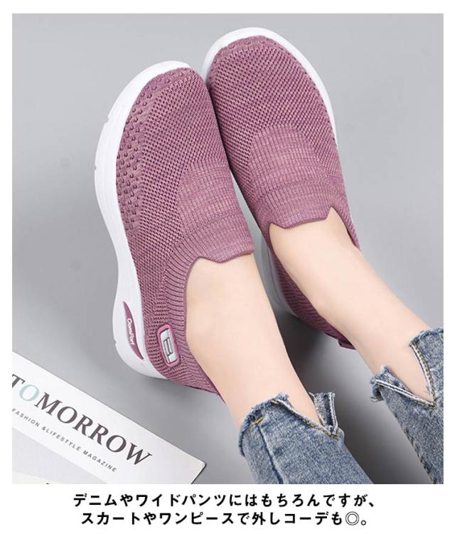 厚底 スリッポン ニット メッシュ スニーカー 厚底スリッポン レディース 靴 外反母趾 シューズ 幅広 甲高 ストレッチ 伸縮 大人 婦人靴 反母趾 靴 軽量 軽い 春 秋 痛くない コンフォートシューズ 歩きやすい 疲れない 大きいサイズ