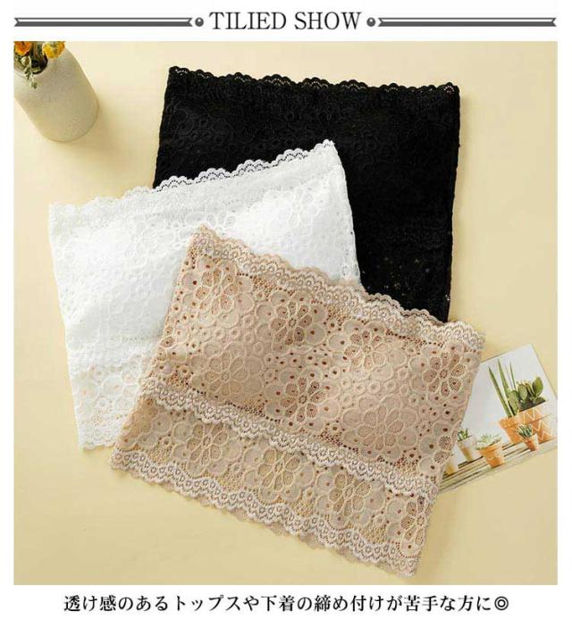 チューブトップ レース カップ付き ノンワイヤー ベアトップ ストラップなし 花柄レース パッド入り 見せブラ 胸チラ防止 オフショルダー インナー 選べる2丈 フリーサイズ 全3色
