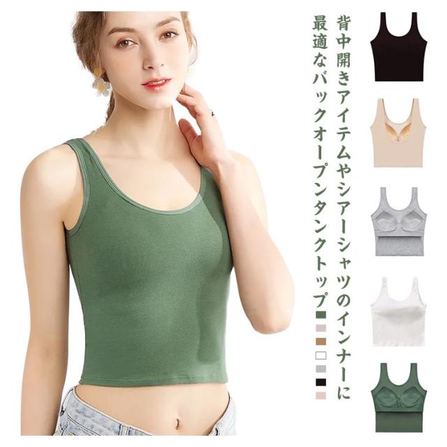 送料無料 タンクトップ インナー トップス 背中開き バックオープン ブラトップ カップ付き レディース ブラキャミ キャミソール タンクトップ 背中見せ ノースリーブ カップ付きインナー S M L XL