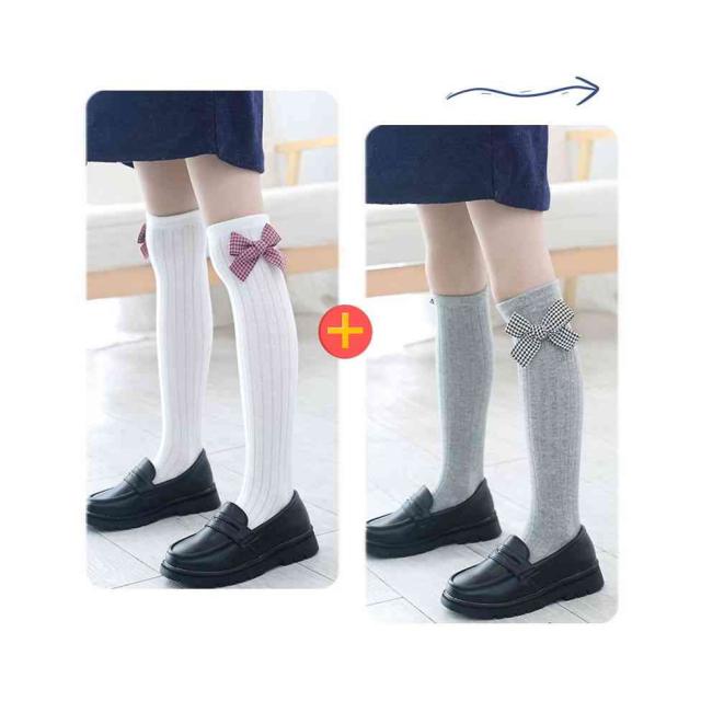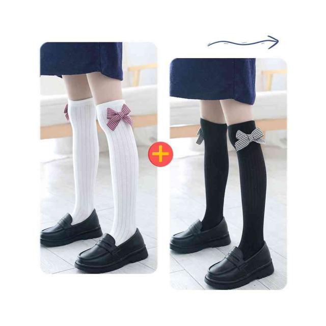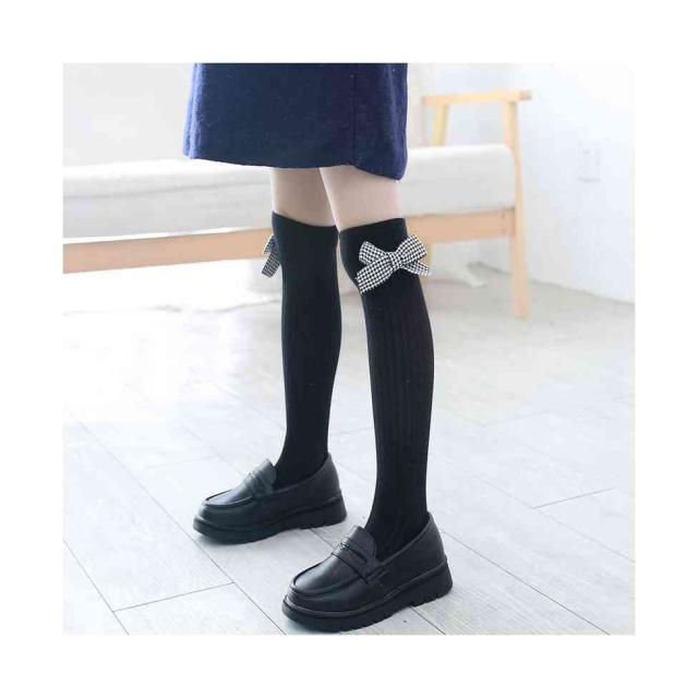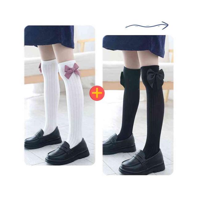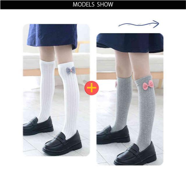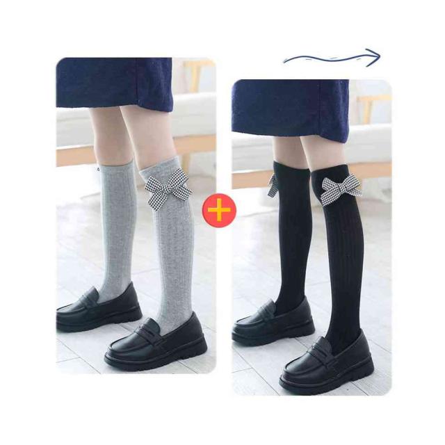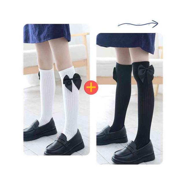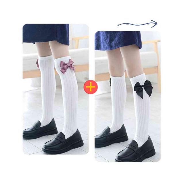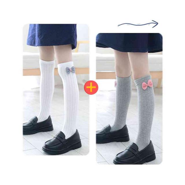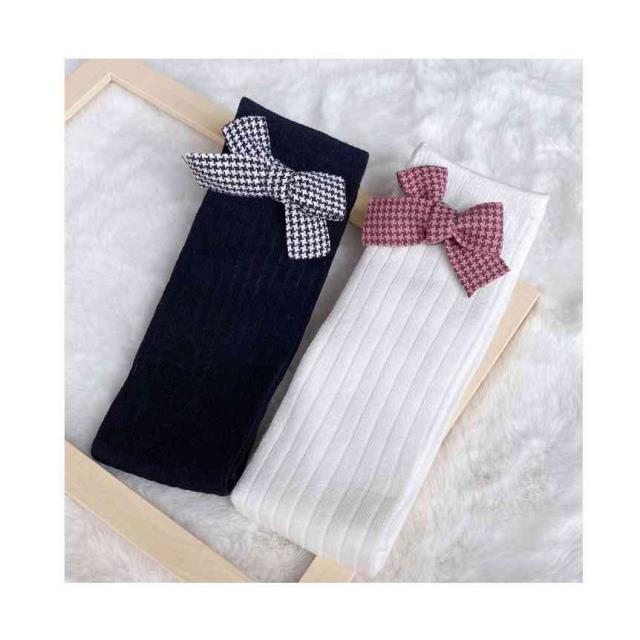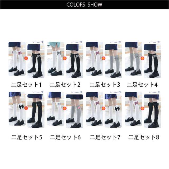 リボン靴下 ハイソックス キッズ 春秋 2足セット クルーソックス 子供用 ロング靴下 女の子 くつ下 かわいい おしゃれ レッグウェア リボン付き おしゃれソックス カジュアルソックス 学生靴下 お出かけ 普段使い 女児 送料無料