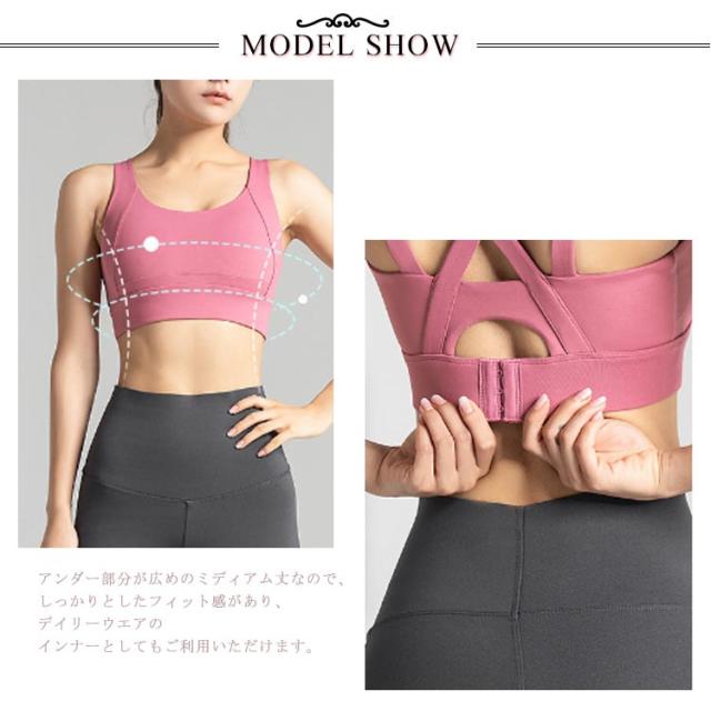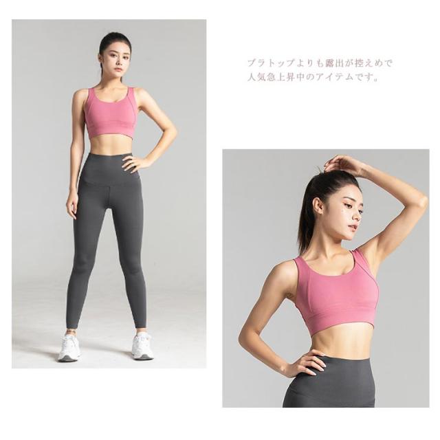 | バックスタイルを印象付ける個性的なデザインが背中を綺麗に見せてくれます、柔らかくて伸縮性のある素材で着心地抜群のヨガトップス。 ブラトップよりも露出が控えめで人気急上昇中のアイテムです。 優れた吸水性で、ベタつき感がなく、汗が残りにくいさらっとした肌触りが続きます。 アンダー部分が広めのミディアム丈なので、しっかりとしたフィット感があり、デイリーウエアのインナーとしてもご利用いただけます。 | |
