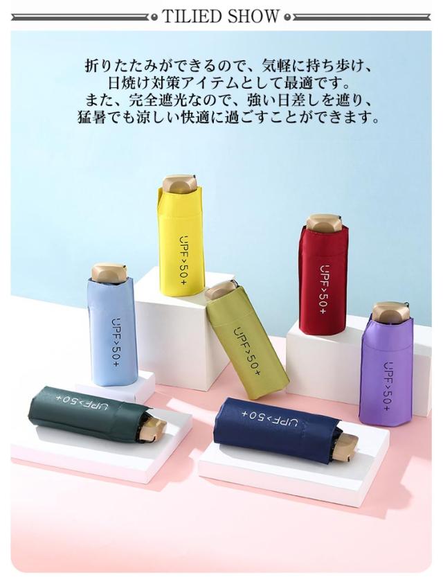 日傘 折りたたみ 完全遮光 超軽量 182g ミニ コンパクト uvカット UPF50+ 遮光率100% 遮光 6本骨 5つ折り かわいい レディース メンズ 折りたたみ傘 晴雨兼用 撥水 収納袋付 無地 シンプル 誕生日 プレゼント 遮熱 涼しい 【送無】