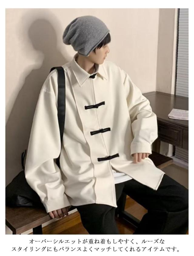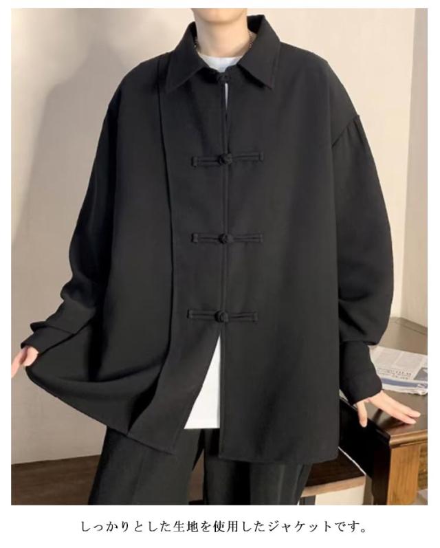 ジャケット メンズ シャツジャケット チャイナボタン 長袖 シャツ アウター オーバーサイズ ビッグシルエット トップス 襟付き チャイナジャケット 羽織り ライトアウター 春夏秋 無地 ゆったり 大きいサイズ カジュアル おしゃれ 男性用 大人 通勤 通学 ストリート 春 夏