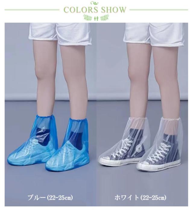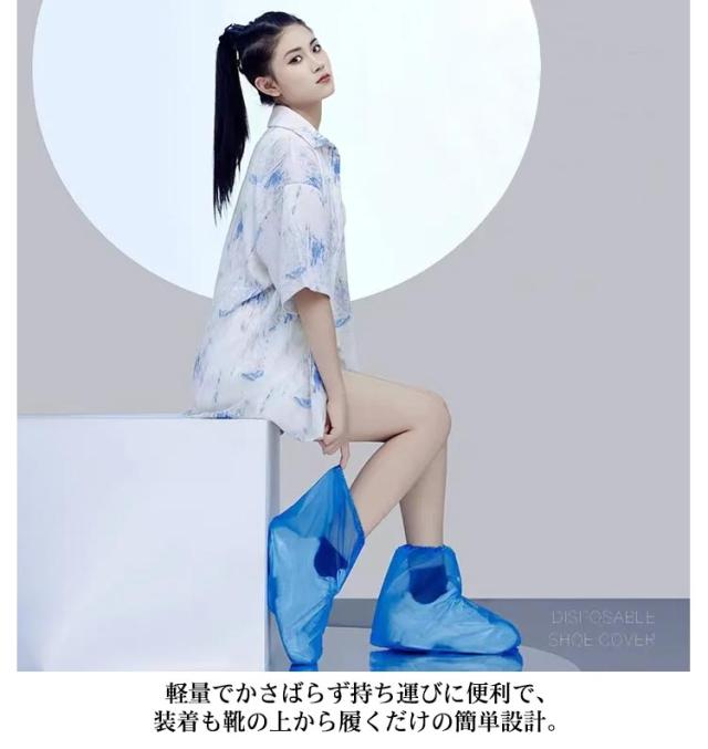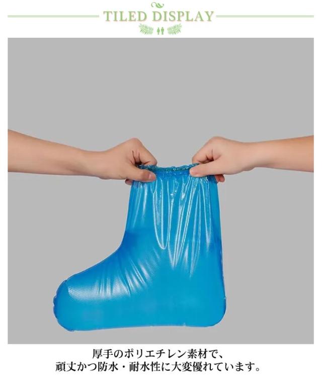 | 水や泥汚れから足元を守る、靴の上からサッと履けるレインシューズカバー。 使い捨てタイプで小さく折りたたみ可能。通勤、通学のバッグにしのばせておいても、邪魔になりません。 軽量でかさばらず持ち運びに便利で、装着も靴の上から履くだけの簡単設計。 厚手のポリエチレン素材で、頑丈かつ防水・耐水性に大変優れています。 ゴム付きでふくらはぎまでしっかり覆うことができるので、靴だけでなくズボンの裾も雨水、汚れからきっちりガードします! 突然の大雨にも対応でき、レインブーツ(長靴)を持ち運びできない状況でも安心して使える物を! | |