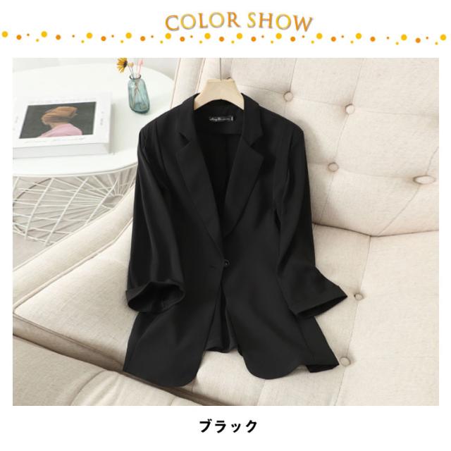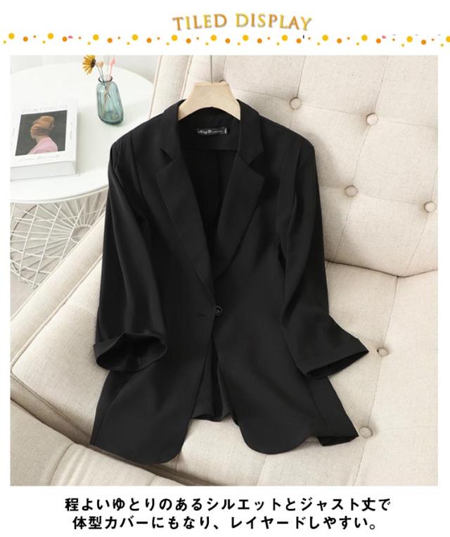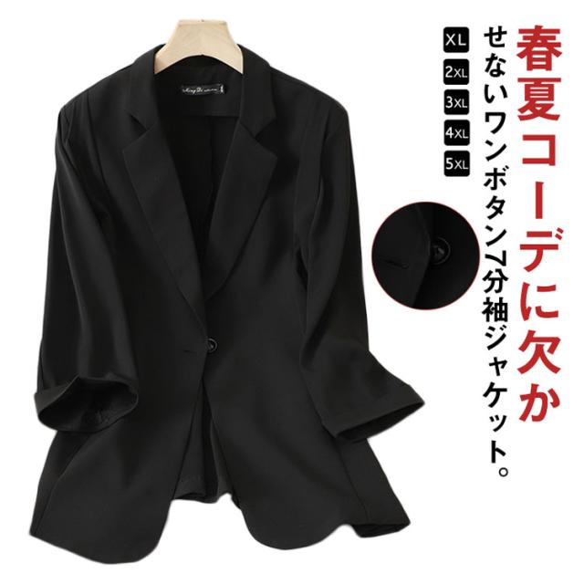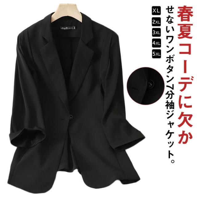 大きいサイズ レディース ジャケット テーラードジャケット ストレッチ ゆったり 7分袖 スーツ 単品 春夏 夏服 送料無料 サマースーツ ビジネス 黒 薄手 入学式 卒業式 フォーマル オフィス 結婚式