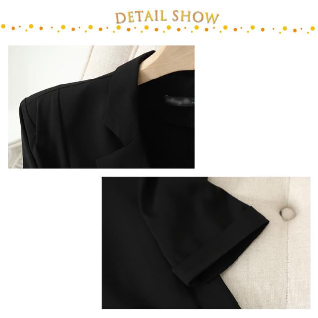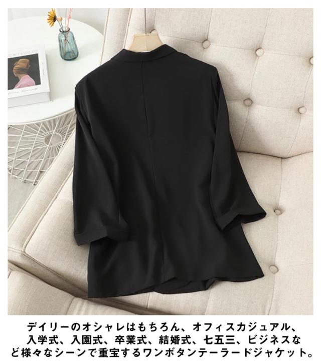 | 春夏コーデに欠かせないワンボタン7分袖ジャケット。 シンプルなデザイン、美しいラインを演出してくれるブラックジャケット。 程よいゆとりのあるシルエットとジャスト丈で体型カバーにもなり、レイヤードしやすい。 ストレッチの効いた生地、快適にご着用頂けます。 デイリーのオシャレはもちろん、オフィスカジュアル、入学式、入園式、卒業式、結婚式、七五三、ビジネスなど様々なシーンで重宝するワンボタンテーラードジャケット。 | |
