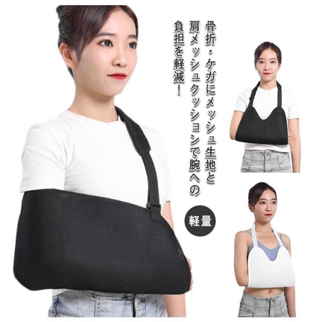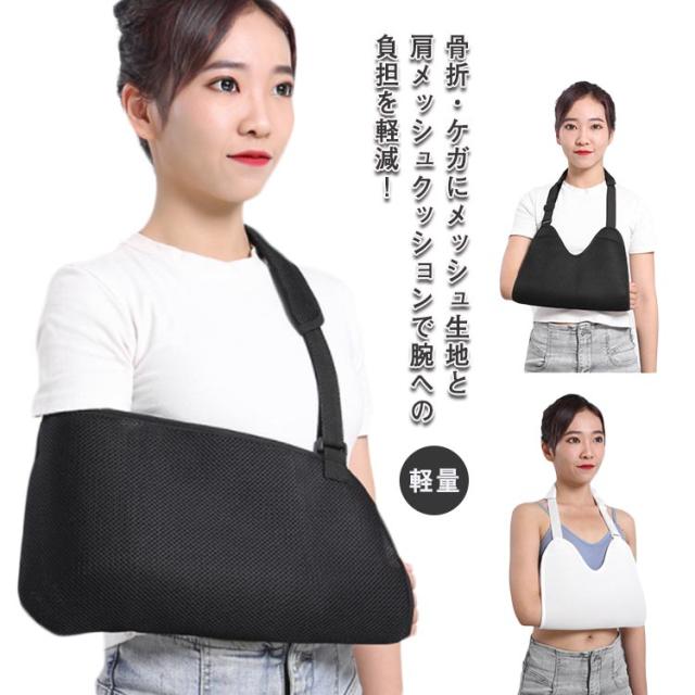 送料無料 骨折 アームホルダー 三角巾 腕 カバー 固定 サポーター 肩 肘 介護 ケガ リハビリ ケア 黒 白 大人 男性 女性 子供 保護 育児 抱っこ 通気性 メッシュ 腕吊り 腕サポーター テニス 野球 ゴルフ バスケ スポーツ サイズ調整 軽量 左右兼用