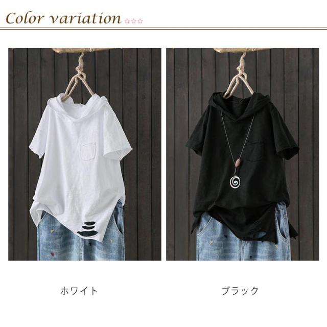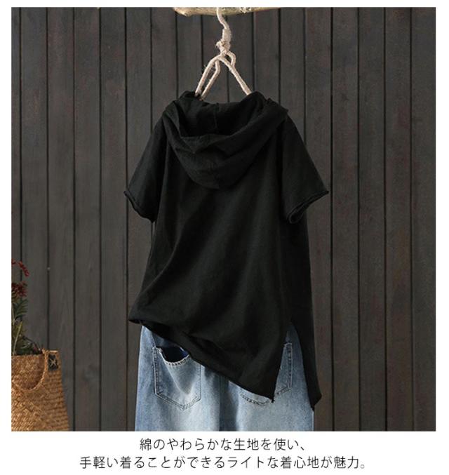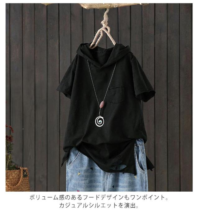 フード付き 半袖tシャツ フード付きtシャツ レディース 薄手パーカー tシャツ トップス カジュアル おしゃれ プルオーバー カットソー 綿 ホワイト ブラック 無地 春服 夏服 半袖 シンプル おしゃれ 大きいサイズ ギフト 送料無料
