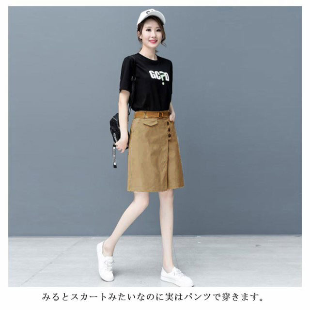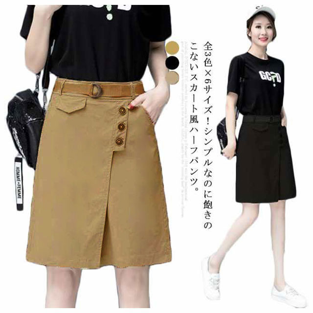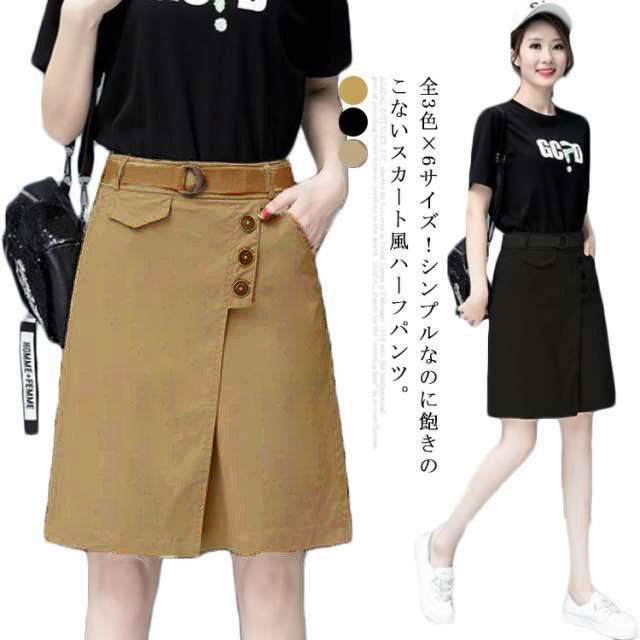 スカート風ハーフパンツ ベルトなし レディース ショートパンツ 短パン ハーフパンツ カジュアル 五分丈 膝丈 キュロットパンツ ワイドシルエット ボトムス 綿 コットン キレイめ 通勤 大きいサイズ 無地 シンプル 快適 オフィス 送料無料