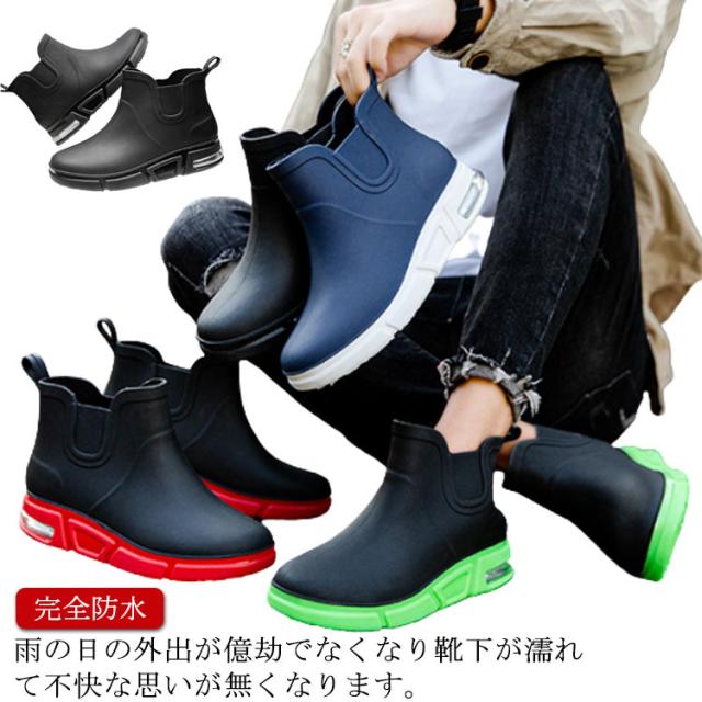 レインシューズ サイドゴアブーツ メンズ レインブーツ 完全防水 ショートブーツ レイン ブーツ レインシューズ おしゃれ 防滑 歩きやすい 黒 ネイビー 24.5cm-27.5cm 大きいサイズ 男性 アウトドア 釣り 花見 夏 雨 雪 雨靴 滑り止め
