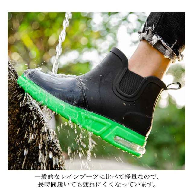 | 雨の日の外出が億劫でなくなり靴下が濡れて不快な思いが無くなります。 通勤・通学はもちろんガーデニングや洗車・アウトドア・キャンプに衝撃吸収力もあるので,足場が悪い場所でも安心して歩ける機能性抜群のシューズです。 柔らかい素材を採用して、長い時間の歩行や作業も快適、柔軟性のある素材で足あたり柔らか 。 ソールには耐磨耗性素材を使用ので、滑り止め効果と耐久性があります。 一般的なレインブーツに比べて軽量なので、長時間履いても疲れにくくなっています。 | |