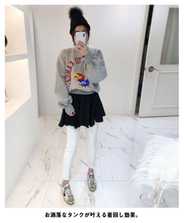 | ゆるっとお洒落の着回し力!ゆったりスカートタンクトップ 生地にもこだわり、着心地の柔らかい生地を使用しました。 着脱しやすいラウンドネックに、動きやすい体型カバータイプ、裾はアシンメトリースカートデザインの長め丈です。 お洒落なタンクが叶える着回し効果。 これさえあれば、コーディネートはもう迷わない。 羽織のインナーとしても重ね着スタイルにも、魅力を発揮してくれる、カジュアルシルエット! オシャレなレイヤードスタイルが即完成しちゃう優秀アイテムです。 | |