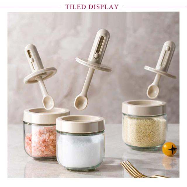 2個セット 調味料入れ スプーン付き ガラス 調味料ポット 調味料ボトル 塩入れ 砂糖入れ 使いやすい おしゃれ 収納 保存 湿気防止 調味料容器 密閉容器 調節可能スプーン付き スパイス入れ おしゃれ かわいい 実用 新生活