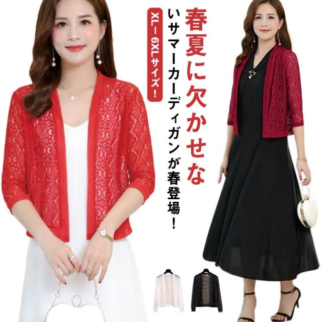 日焼け防止 レースカーディガン サマーカーディガン カーディガン 送料無料 七分袖 長袖 フラワーレース 透け編み ニットカーディガン 総レース 薄手 春夏 夏 冷房対策 オフィス ショート丈 シンプル おしゃれ 大きサイズ
