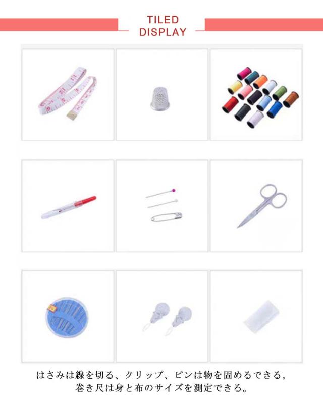 | 裁縫セット:日常生活の様々なお裁縫ニーズに満たせます。普通より靭性がもっと強い糸を採用、耐久性に優れて断線しにくいです。 収納バッグ:優れた工芸で製作バッグは防水でき、取り出しが便利だし、裁縫道具が失われることの心配もない。コンパクトで場所をとらずに作業でき、持ち運びにも便利です。 多機能な部品は日常の需給が満足できる:はさみは線を切る、クリップ、ピンは物を固めるできる,巻き尺は身と布のサイズを測定できる。 主婦、初学者、中学生、高校生、旅行者、サラリーマン、裁縫が好きなおばあちゃん、DIYのファンなども使えます。学校での家庭科などの授業の裁縫セットとしても最適。そうなセットをプレゼントとして家族、友たちに贈ってもなかなかいい! | |