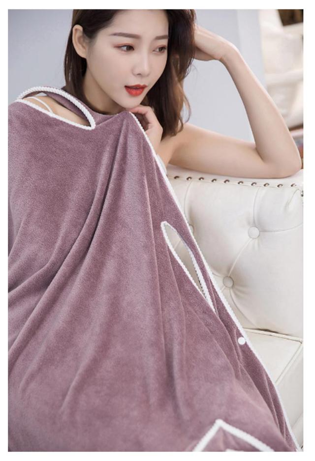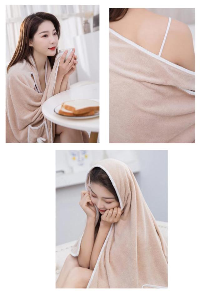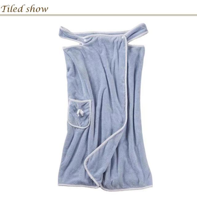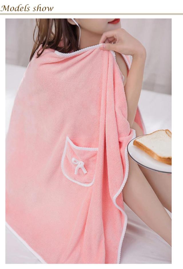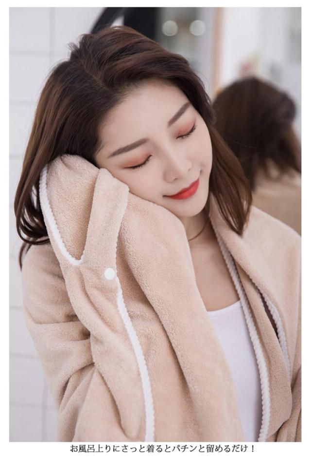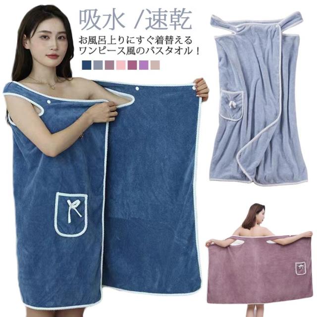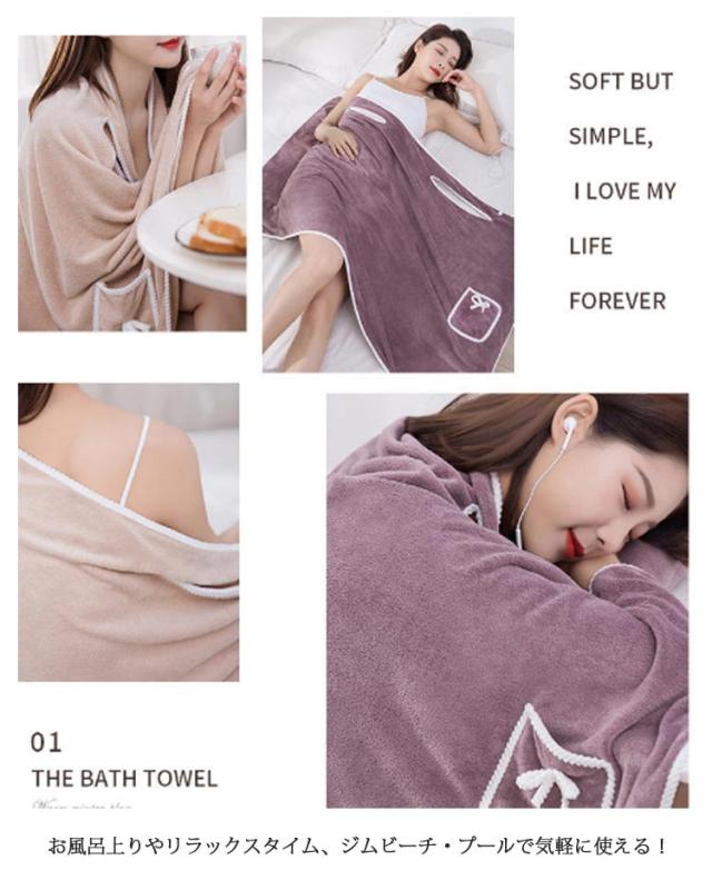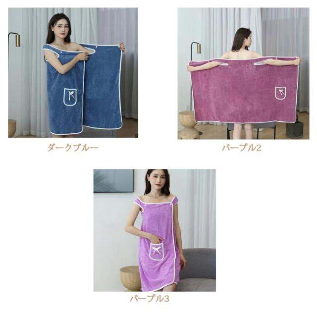 | お風呂上りにすぐ着替えるワンピース風のバスタオル! ふんわりと柔らかく、気持ちの良い肌触りが魅力的! 吸水性と速乾性に優れた生地! お風呂上りにさっと着るとパチンと留めるだけ! お風呂上りやリラックスタイム、ジムビーチ・プールで気軽に使える! | |