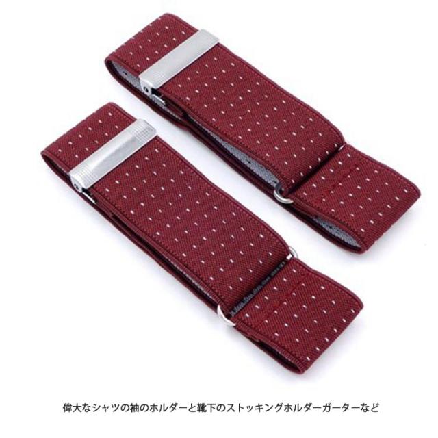 | 高品質のナイロン製、弾力性と耐久性 1つのサイズが最もフィット、幅:3.5cm / 1.38インチ 偉大なシャツの袖のホルダーと靴下のストッキングホルダーガーターなど メンズアームガーターバンド、クラシックポルカドットデザイン 調節可能な金属バックル;弾性ベルト、耐久性と反スリップ | |