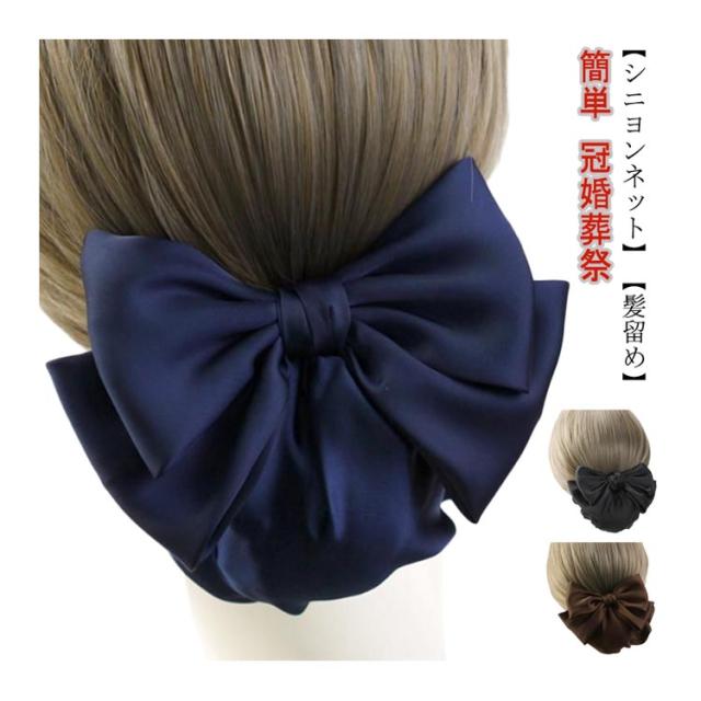 就活 まとめ髪 お団子 ネット リボン 髪飾り バレッタ オフィス フォーマル シンプル お団子ヘア シニヨン ヘアアクセサリー お団子ネット お団子 カバー クリップ付き 女の子 簡単 冠婚葬祭 お葬式 髪留め